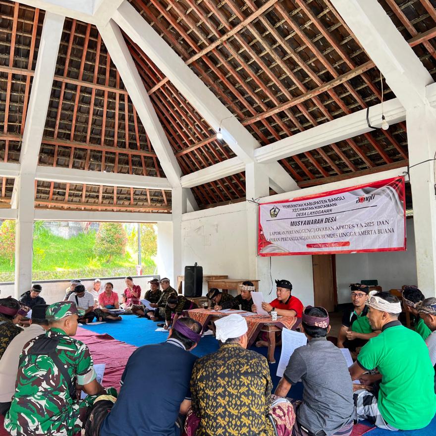 Pada hari kamis tanggal 5 pebruari tahun 2026 BPD Desa Langgahan menyelenggarakan Musdes pertanggung jawaban APBdes tahun 2025 dan pertanggung jawaban BUMDES Lingga Amerta Buana Desa Langgahan tahun 2025.kegiatan ini mengundang BPD dan anggota selaku penyelenggara,perbekel, perangakat dan staf Desa,Bidan Desa,BlKB,Babinsa,Babinkamtibmas,kelihan banjar langgahan kangin dan langgahan kauh,pengawas Bumdesa,anggota Bumdesa serta tokoh - tokoh masyarakat Desa Langgahan